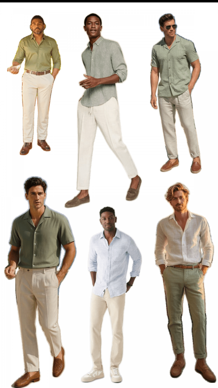 Para eles: camisa de botão com calça leve (linho ou sarja). Blazer é opcional, assim como a gravata.